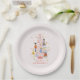 This cute and festive birthday paper plate features a pink christmas tree decorated with nutcracker characters. Personalize it for your needs. You can find matching products at my store.