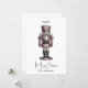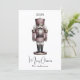White background, and a dusty rose coloured nutcracker. Merry Christmas written with a trendy handlettered style script.