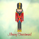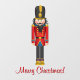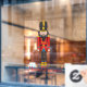 Nutcracker toy soldier with the words "Merry Christmas" window cling. Red, blue and gold.