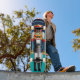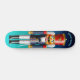 This funny skateboard deck features a nutcracker toy soldier in blue hussar uniform, with a red hat, big spiky white beard, and a black pointed moustache.