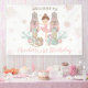 Personalize this sweet pink winter onederland first birthday party welcome sign backdrop banner easily and quickly, simply press the customize it button to further re-arrange and format the style and placement of the text. Featuring whimsical characters from the Nutcracker in sweet pastel colours. Perfect for your little snowflake's first birthday! Also fantastic for other ages and occasions such as baby shower, baptism, christening, new baby and more. Matching items available in store! (c) The Happy Cat Studio.