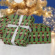 This colourful wrapping paper features a pattern of a traditional wooden nutcracker against a green background. Perfect for wrapping Christmas presents.
