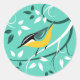 Decorative bird stickers with stylized Red Breasted Nuthatch art on a teal colour background and swirl branches with matching leaves