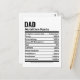 Nutrition Facts Funny Dad Personalized Name Postcard