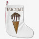 Holiday stocking features an original marker illustration of a delicious vanilla ice cream cone with peanuts and chocolate. Simply personalize with your name for a one-of-a-kind Christmas decoration!