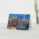 Manhattan skyline with twin tower lights and has the statue of liberty on the back of the card.
