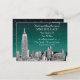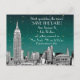 NYC Skyline 01 Etched Teal Starry Save the Date Announcement Postcard