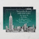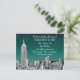 Elegant, stylish, chic customizable invitations and accessories with an iconic view of the New York City skyline, featuring an etched look photo of the ESB and Chrysler Building and rear view of the Flatiron Building shown on a teal gradient starry sky background.