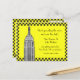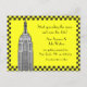 Customizable invitations and accessories with an iconic view of the New York City skyline, featuring a black & white etched look photo of the ESB against a black and yellow chequerboard background design inspired by city cabs .