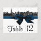 NYC Wide Skyline Etched BW Navy Blue Table Number Postcard