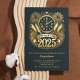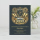 Invitation NYE 2025 Personnalisée Electronic New Years Eve Party. Invitation mobile numérique dans les couleurs noir et or avec feux d'artifice, Champaign et clic sur l'horloge murale Illustration.