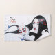 It was advertised as NAVY blue and the color sent was greenish blue. I am disappointed in this product. Quality and printing are great as are all my other orders. As you can see in picture the tea towel on right is perfect, hand towel not so much! Print was awesome and just as ordered