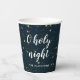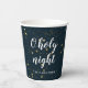 These personalized Christmas paper cups are a beautiful addition to any holiday party. The dark navy blue background with a stunning gold star print is both elegant and festive. "O Holy Night" in white script, adds a magical touch to the cups.