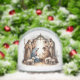 A tender depiction of the nativity unfolds beneath a glowing star, where Mary and Joseph kneel in awe beside the newborn Savior. Shepherds gather reverently, their expressions lit by quiet wonder, while gentle sheep rest nearby in the stillness of the manger. This sacred scene invites reflection on the miracle of Christ’s birth and the timeless hope it brings to all. On the reverse side, a smaller version of the image accompanies a beloved scripture from Luke 2:10–11, completing the message with spiritual grace.