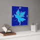 Digitally enhanced image of an oak leaf in shades of ice blue and white on a deep cobalt blue background