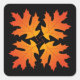 Black sticker with a block of colourful orange folk art style oak leaves.