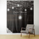 Oak Ridge Rustic Dark Brown Barn Wood, Sparkling Mason Jars, and Glowing String Lights Design with Twinkling strands of dangling lights and jars on a deep rich wood texture with white Lace accents. With Modern Typography Script Fonts. A rustic elegant country farmhouse style design - Personalized Wedding Bridal Shower Welcome Photography backdrop, photo booth prop background!