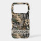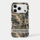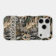Customize this oak tree camouflage iPhone 17 pro case with your name in a trendy modern CAP font in gray on opaque cream. It's masculine and perfect for your favorite military, hunting, country or outdoorsman!