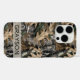 Customize this oak tree camouflage iPhone 16 pro case with your name in a trendy modern CAP font in gray on opaque cream. It's masculine and perfect for your favorite military, hunting, country or outdoorsman!