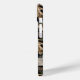 Customize this oak tree camouflage iPhone 15 case with your name in a trendy modern CAP font in gray on opaque cream. It's masculine and perfect for your favorite military, hunting, country or outdoorsman!