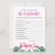 This "how well do you know the bachelorette" party game features a flock of watercolor flamingos and fun edgy font. Pair with additional items from the OAKLEY Collection for a cohesive look. This game is perfect for your tropical, summer, and beach bachelorette.