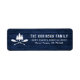 Belles étiquettes d'adresses de retour à thème rustique. Ce design personnalisé et unique présente une silhouette blanche de barques croisées et de pins sur un imprimé de planches de bois aux couleurs bleues riches. Pour voir d'autres modèles comme celui-ci, n'hésitez pas à visiter ma boutique ici à "Zazzle.com/Rustic_Charm". Merci .