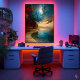A tranquil oasis shines under the vast cosmic sky, surrounded by golden dunes and a glowing Milky Way. A luminous blue tree stands by the crystal-clear waters, reflecting the beauty of the night. This surreal artwork blends desert serenity and celestial wonder, perfect for dreamers, explorers, and lovers of mystical landscapes.
