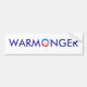 White bumper sticker with blue lettering. The "O" in warmonger is replaced with the Obama logo.