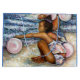 Original Painting of two girls playing with pink balloons on Coney Island Beach by New York City, Fine Art Artist, Gaye Elise Beda