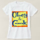 Obey the Cook snappy kitchen slogan. You must obey the cook if you want to eat! For chefs with an attitude! A funky 50's font in blue on a yellow and orange background.