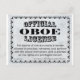 Official Oboe License . There are many activities involving various equipment, such as operating an automobile, airplane, etc., that require specialized training and licenses. Making music is something that usually requires training: lessons, practice, and rehearsals. Shouldn't it be required of the prospective musicians that they receive a license to operate the equipment, i.e., their musical instrument?