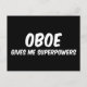 A humourous Oboe design that lets folks know Oboe gives you or a loved one superpowers.