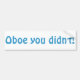 Did you really go there? Oboe you didn't! This Oboe You Didn't bumper sticker is the perfect gift for any snarky oboe player. The design reads, "Oboe you didn't!" in a blue Hobo font because oboe and hobo rhyme. Yeah, that's the kind of creative genius you're dealing with!
