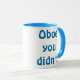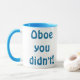 Did you really go there? Oboe you didn't! This Oboe You Didn't mug is the perfect gift for any snarky oboe player. The double-sided, blue ringer mug design reads, "Oboe you didn't!" in a blue Hobo font because oboe and hobo rhyme. Yeah, that's the kind of creative genius you're dealing with! This mug is also great for any coffee drinking bonobos you happen to know.