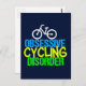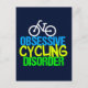 Obsessive Cycling Disorder written in blue, yellow and neon green on a cool dark blue background with a white bicycle. A great cyclist gift with a little humour.