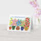 Une carte bonne d'obtention bientôt avec la salutation en français et une rangée des pots de fleurs de fleurs colorées, d'un collage de papier peint à la main par Judy Adamson. L'intérieur est laissé vide pour votre propre message et svp me contacte par mon magasin si vous voudriez une salutation différente de couverture.