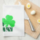 Design moderne avec des lettres typographiques : "Get Lucky" (effet numérique vert et transparence) + un gros trèfle semi-transparent avec de petits shamrocks à l'intérieur. Serviette de cuisine parfaite pour St Patrick. D'autres modèles sont disponibles. Produits correspondants.