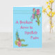 Procurez-vous une carte pour un bras cassé de couleur bleu moyen avec des fleurs design assez inhabituelles et une bordure à pois de polka. Merci à hungryjpeg pour certains des éléments achetés dans le design.
