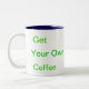 tasse de café faite sur commande avec l'équilibre bleu. Les mots indiquent que "obtenez votre propre café" de 1 côté de tasse.