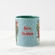 Des tasses de Noël avec des enfants heureux et joyeux qui ramassent l'arbre de Noël à la maison après l'avoir coupé dans la forêt. Personnalisez le texte, plus de tailles et de couleurs disponibles !