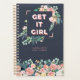 Planificateur de citation motivante mignon pour femmes. Typographie Sans Serif qui dit "Obtiens-le fille". Entouré de florales aquarelles sur un fond bleu marine. Personnalisez ce design personnalisé avec votre propre nom, texte et année.