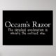 Occam's Razor is a principle that simply means that the simplest explanation is usually the correct one. Among competing hypotheses, the one with the fewest assumptions should be selected. This poster would be a nice scientist gift to hang in their lab or classroom.