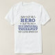 I may not be a hero, but I'm an Occupational Therapist so close enough humourous word art in sans-serif and doodle cross-hatch font lettering black and dark cold blue.