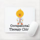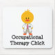 A cute Occupational Therapy Chick wearing a lab coat and pin with the letters O.T. on clothing, stationery and more medical theme merchandise and apparel. These items make a cute and funny gift for a female occupational therapist or OT school graduate. Studios, LLC.