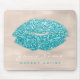 Ocean Aqua Ivory Glitter Name Makeup Lips Kiss Mouse Pad