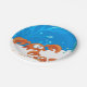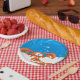 A graphic aquatic illustration of cute crabs on paper plates. ©2014charmainepaulson