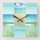 This ocean beach wall clock features three different photographs that capture a beautiful day at the beach.