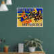 A retro poster that never was until now. A recreation of an old poster that should have been. A Ocean Beach, vintage style beach scene from the art deco era. Bright colours with a woman in a blue bathing suit in the sand on the beach sun bathing with with friends drinking . Exclusively on Zazzle.com/Retro_Art Store.