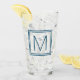 This American style pink glass features a modern double framed monogram in deep ocean blue on each side. Personalize with your choice of initials.
