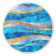 Ocean Blue Gold Metallic Wavy Abstract Ceramic Knob